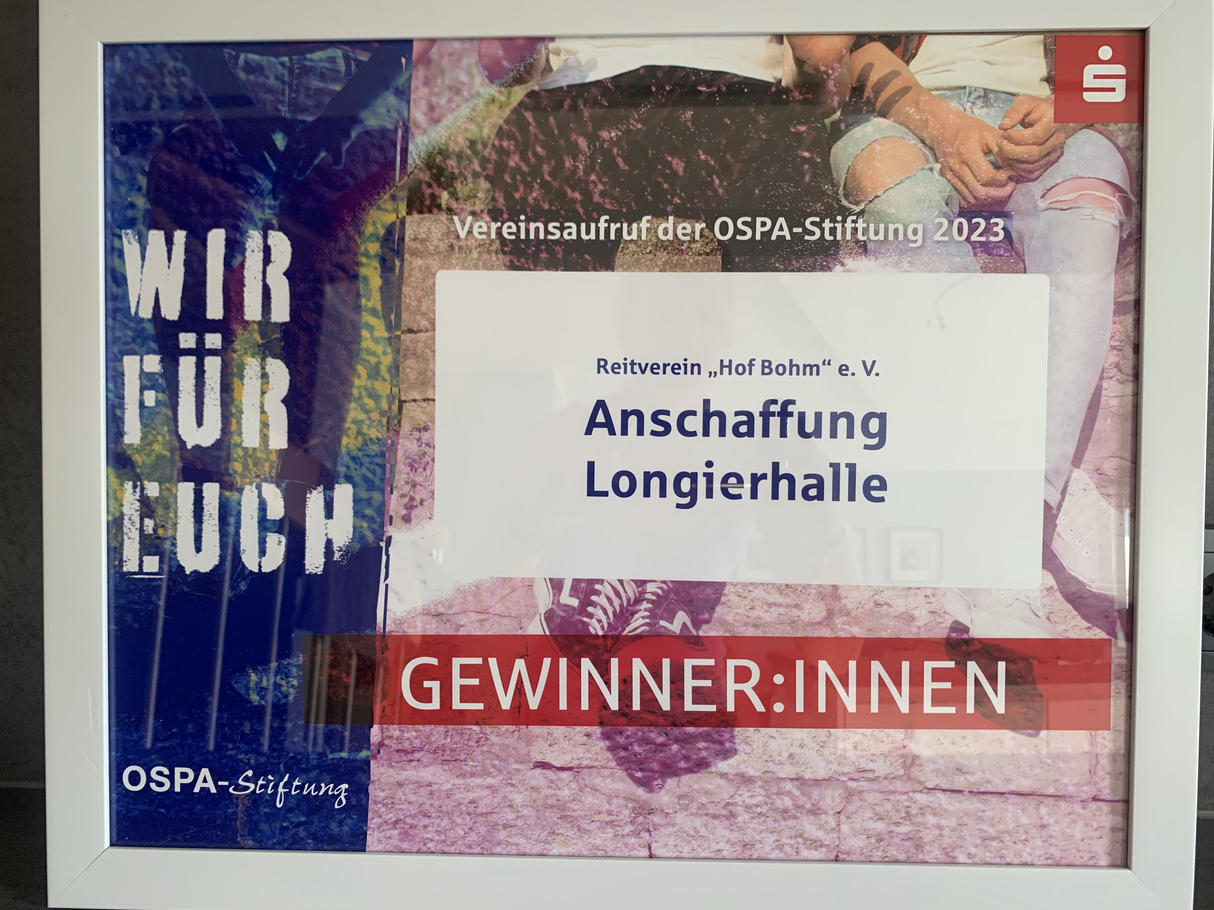 Beworben hatten wir uns mit unserem Herzensprojekt „Anschaffung der Longierhalle“.