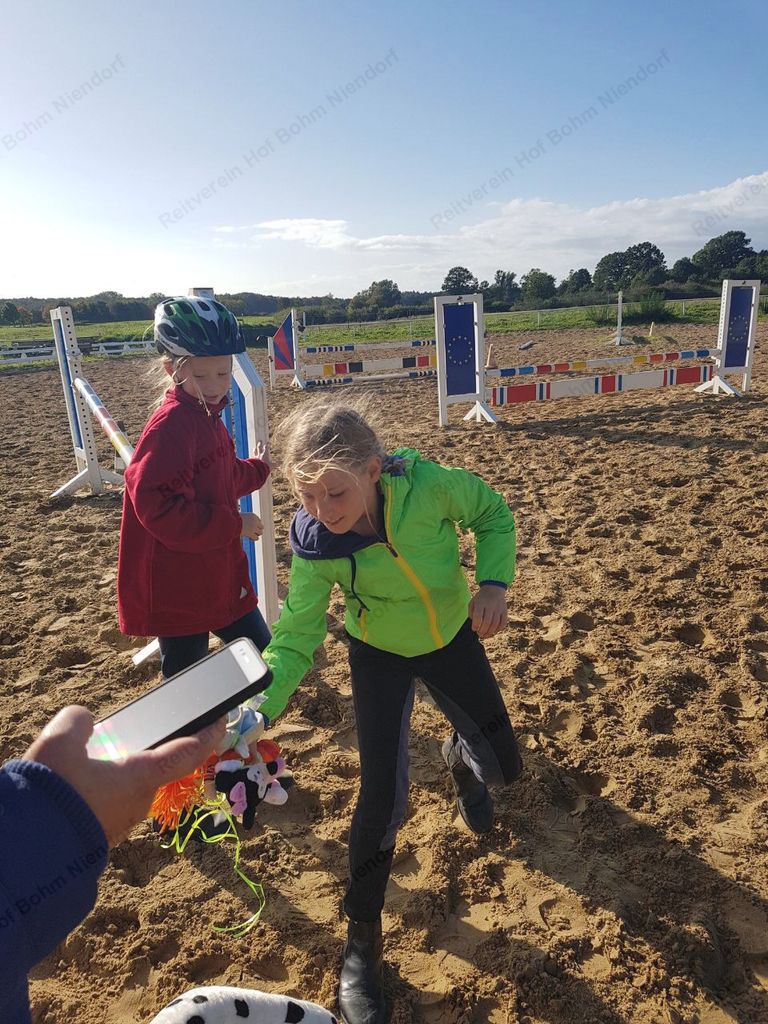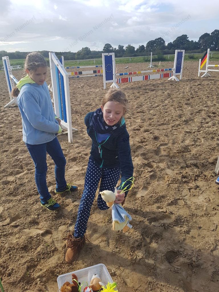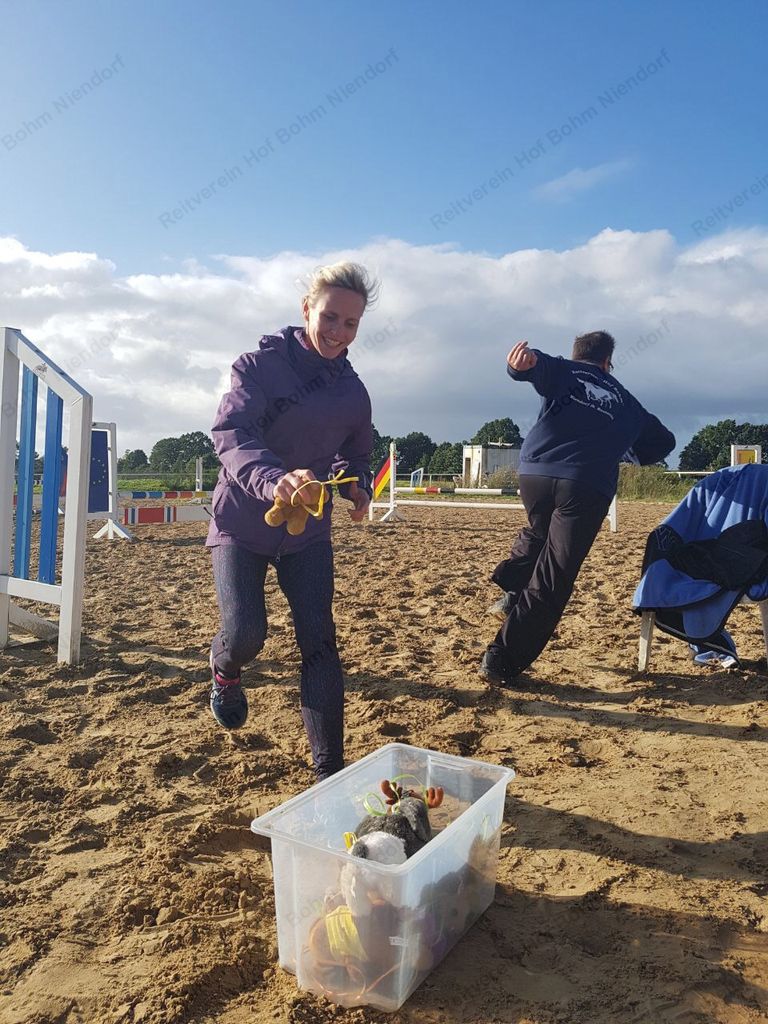 mußten zu Pferde (oder zu Fuß) in einer Minute möglichst viele herumhängende Plüschtiere eingesammelt werden.