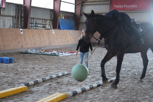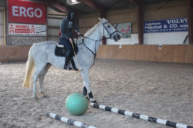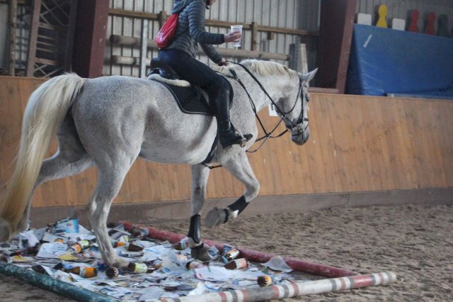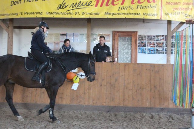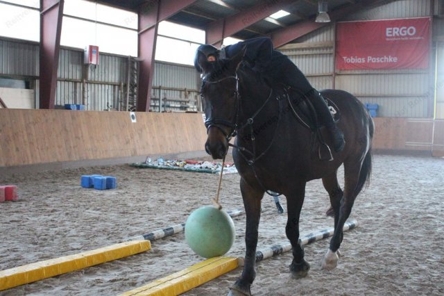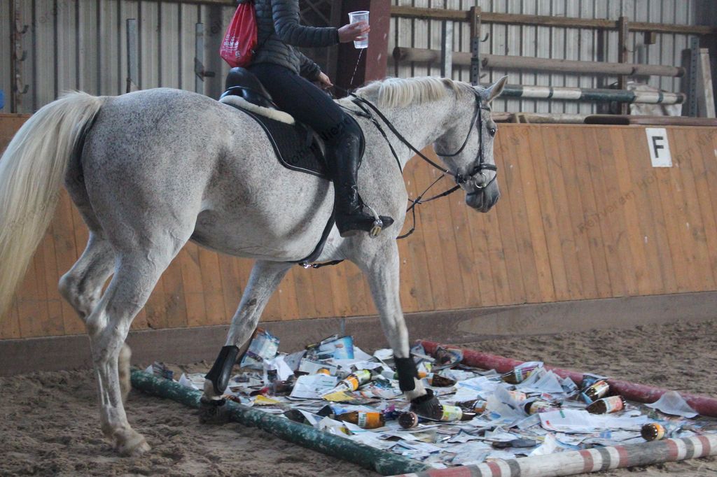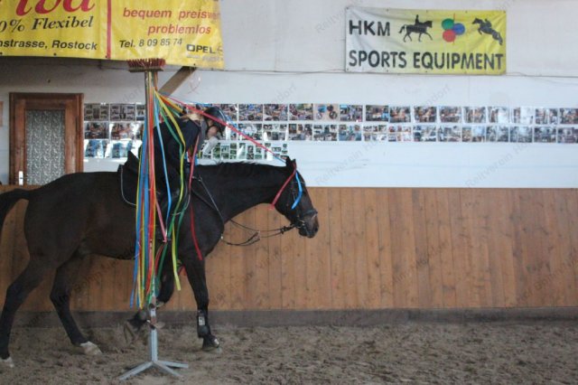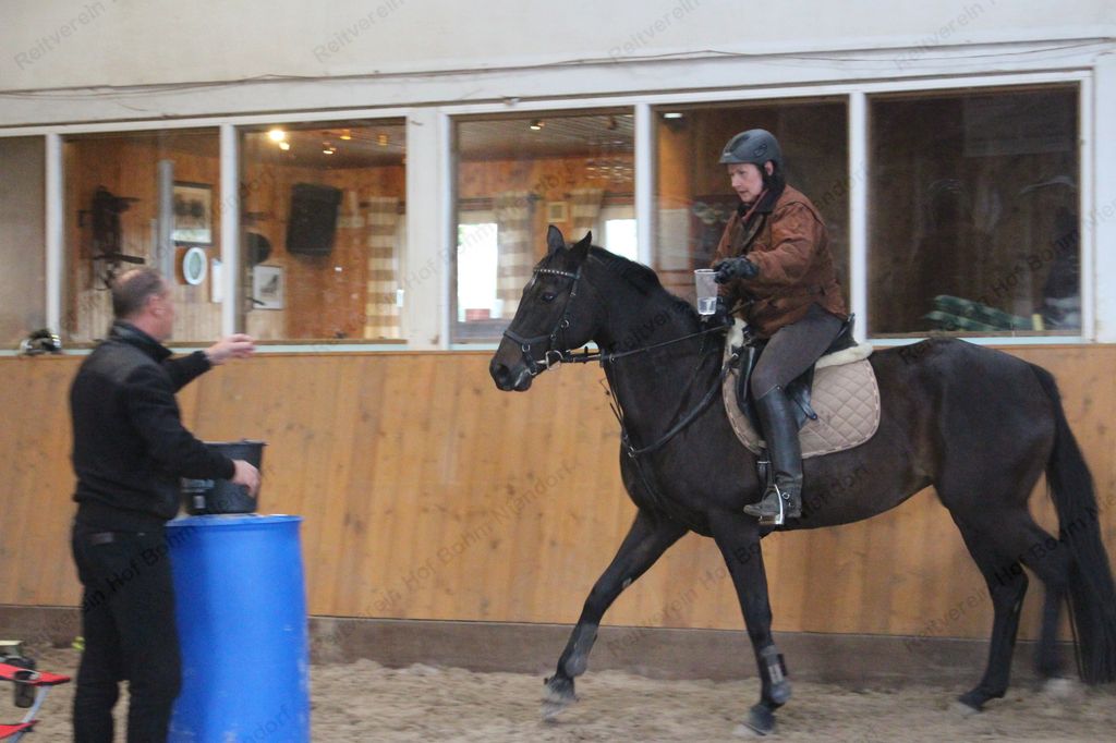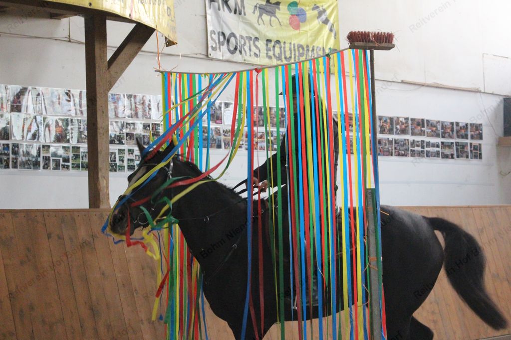Nur für Reiter: Ein Vertrauens- und Geschicklichkeits-Parcour war für einen Reiter zu durchreiten, in der Hand einen Becher mit Wasser drin - und einem Loch im Becherboden.