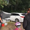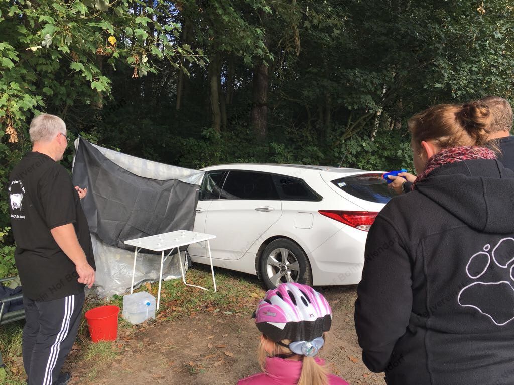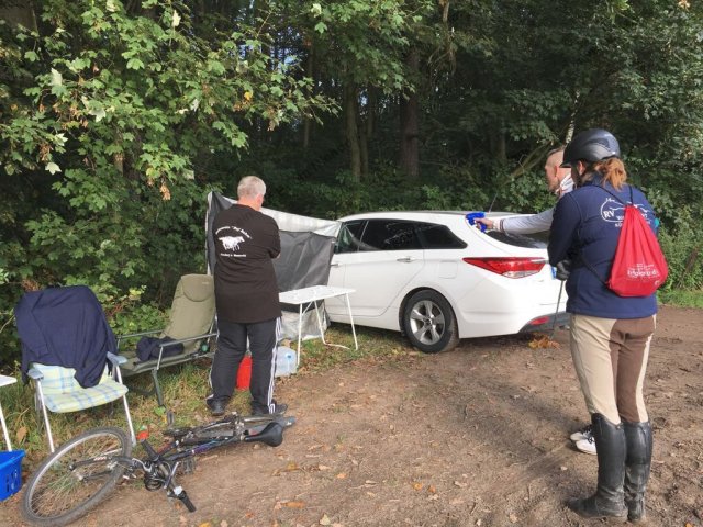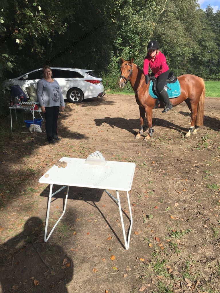 Hier galt es, vom Pferd aus (für Radler aus dem Stand) mit Kastanien eine Büchsen-Pyramide umzuwerfen.