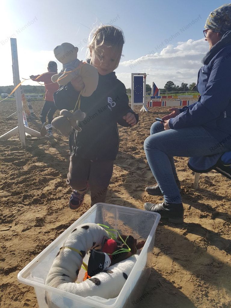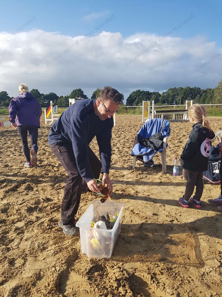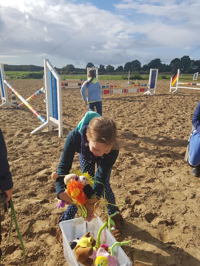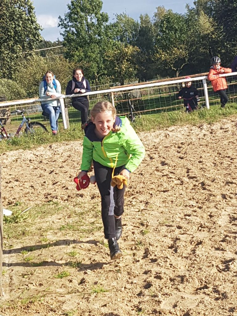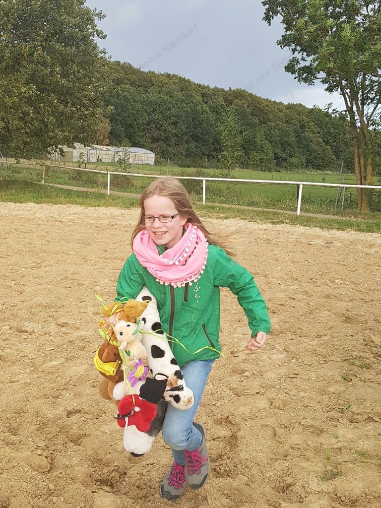 mußten zu Pferde (oder zu Fuß) in einer Minute möglichst viele herumhängende Plüschtiere eingesammelt werden.