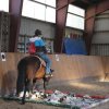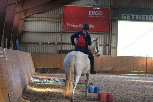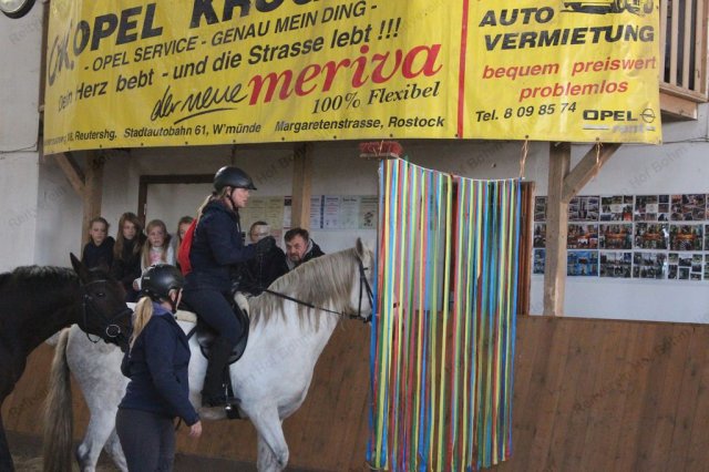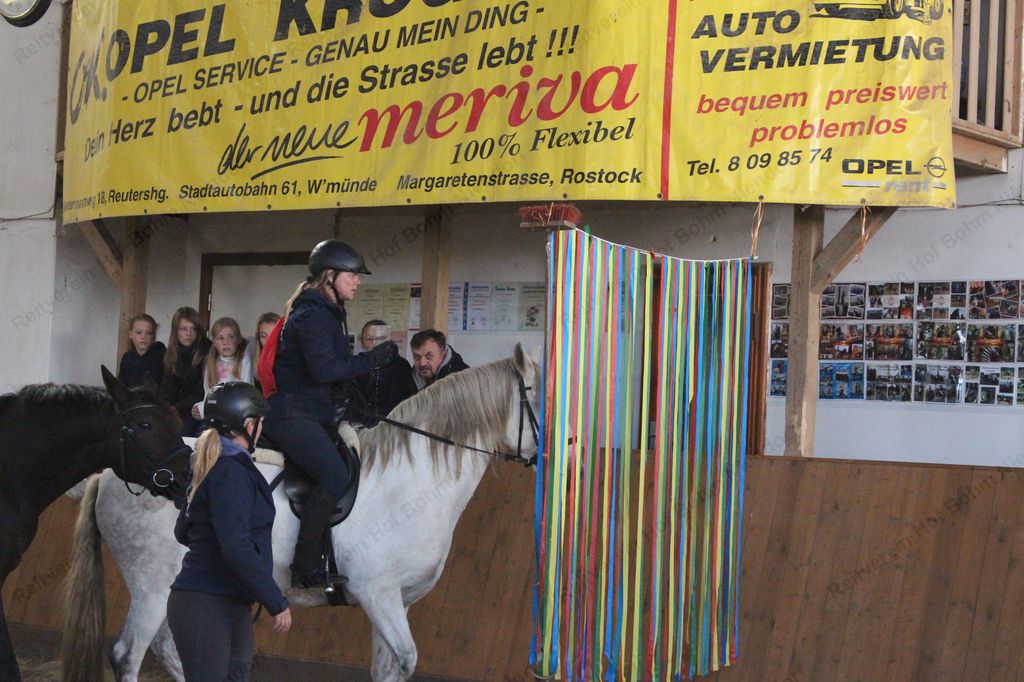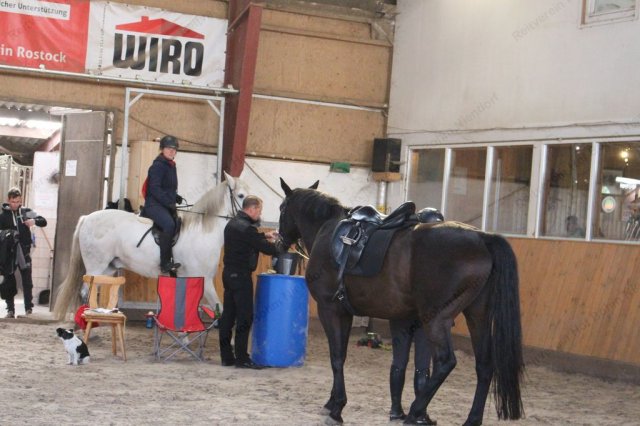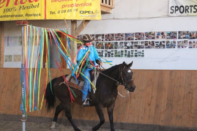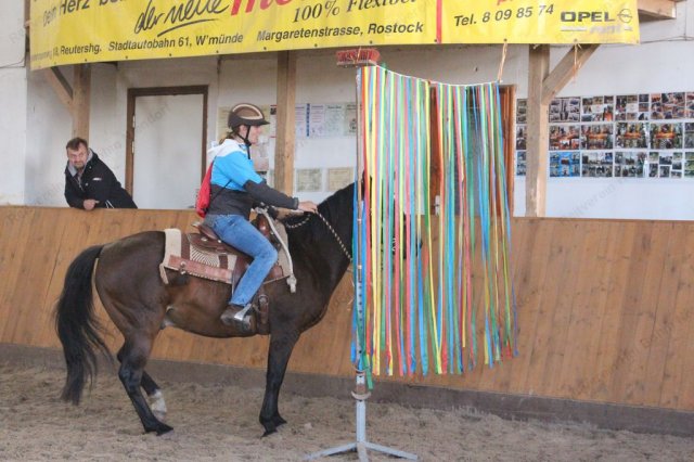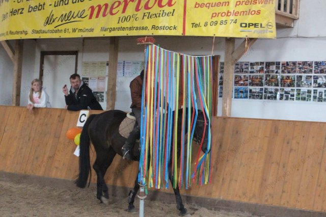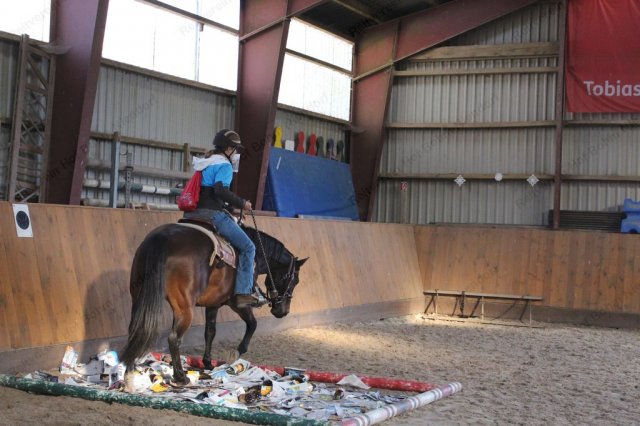 Nur für Reiter: Ein Vertrauens- und Geschicklichkeits-Parcour war für einen Reiter zu durchreiten, in der Hand einen Becher mit Wasser drin - und einem Loch im Becherboden.
