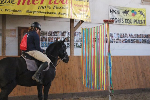 Nur für Reiter: Ein Vertrauens- und Geschicklichkeits-Parcour war für einen Reiter zu durchreiten, in der Hand einen Becher mit Wasser drin - und einem Loch im Becherboden.